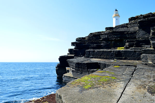 Although it does not have a high elevation, the lighthouse is close to some rugged rocks. [Photo: Ken Trethewey (2016)]