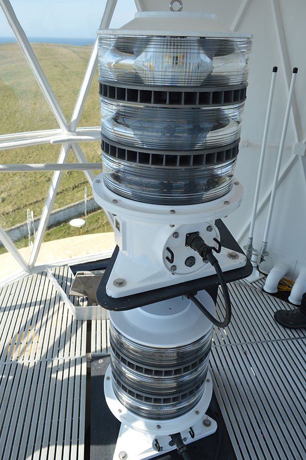 The modern lighting apparatus has no large optic surrounding it, but is comprised of primary and secondary units of LED lights. [Photo: Ken Trethewey (2016)]